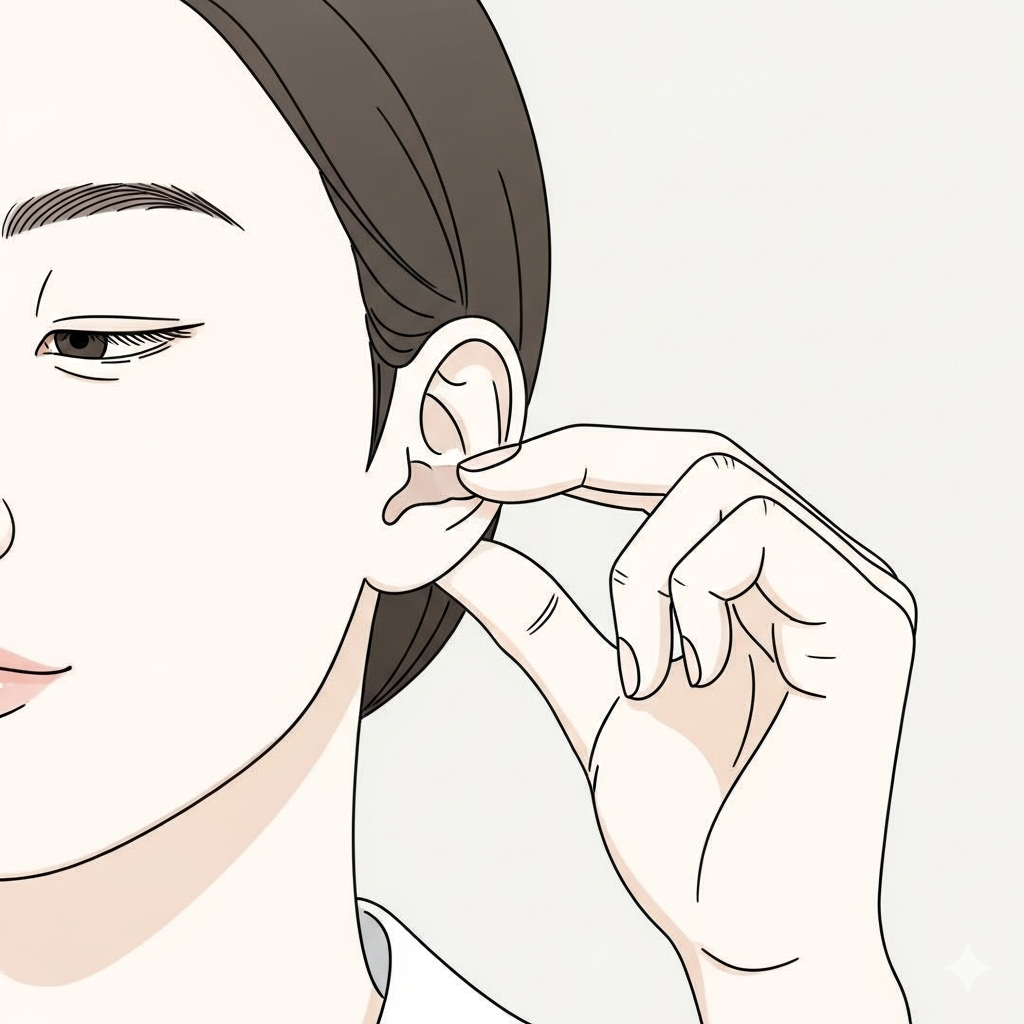 1단계: 준비 운동 - 귀 전체 풀어주기 먼저 양손으로 귀를 잡고 위, 아래, 옆으로 부드럽게 당겨주세요. 그리고 귀 전체를 원을 그리듯 마사지하며 가볍게 풀어줍니다.