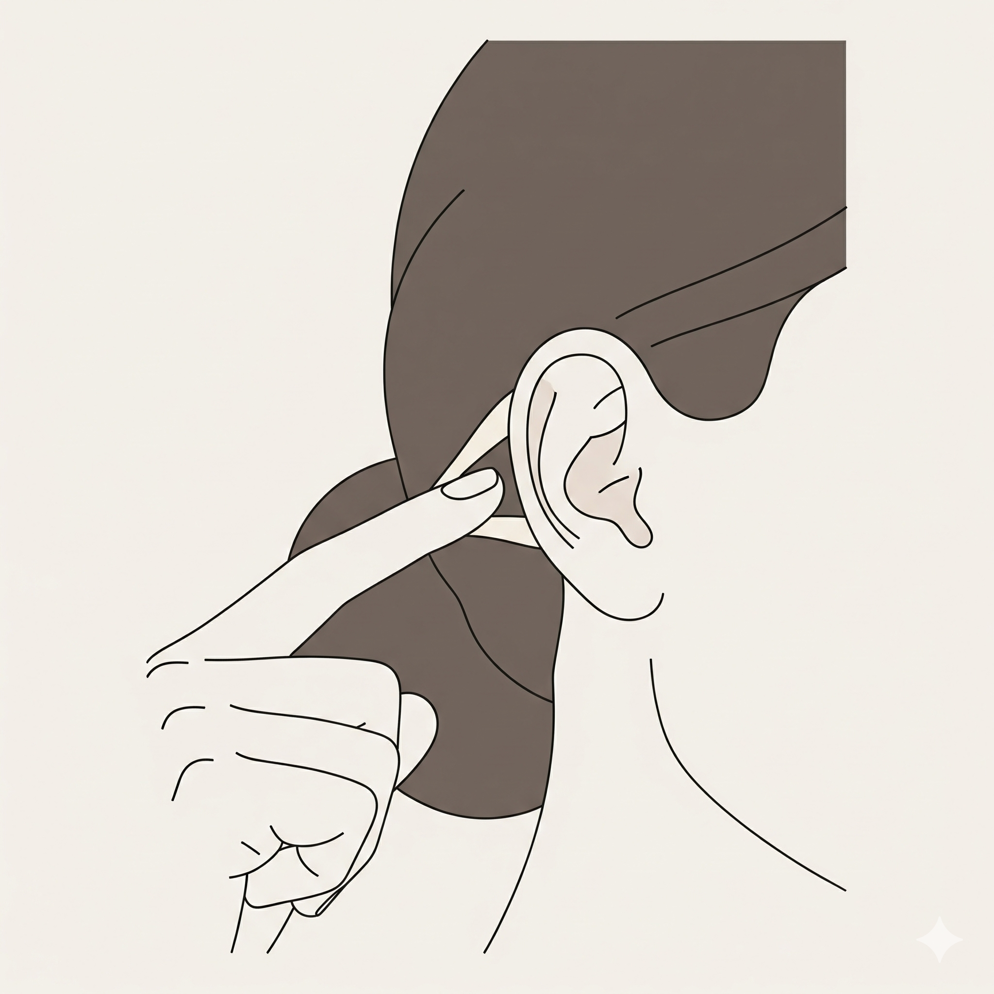 2단계: 귀 뒤 지압하기 검지와 중지를 이용해 귀 뒤쪽에 움푹 들어간 부분을 찾아 지그시 눌러줍니다. 작은 원을 그리듯 부드럽게 마사지하며 뭉친 곳을 풀어주세요.