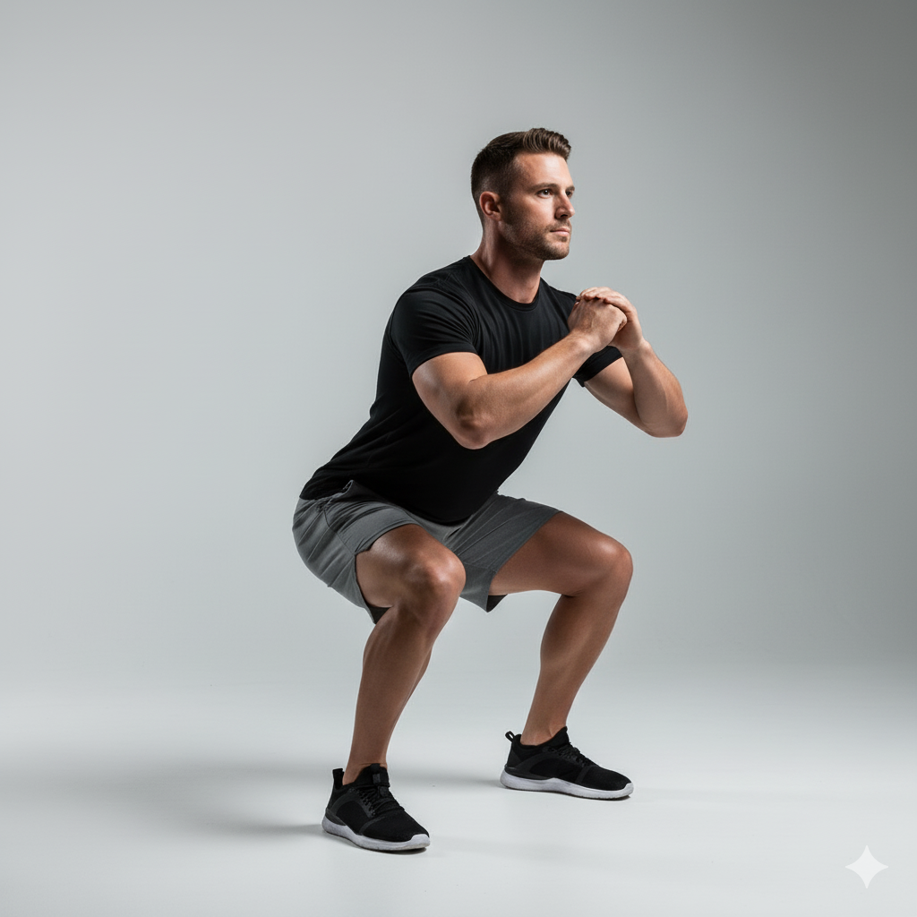 - 코어 근육 강화: 스쿼트 동작 시 상체가 흔들리지 않도록 복근과 허리 근육(코어 근육)이 함께 사용됩니다. 강한 코어는 자세 교정 및 허리 통증 완화에 효과적입니다.