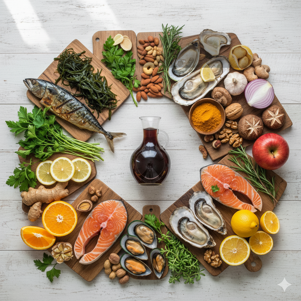 혈액 건강에 좋다고 하면 가장 먼저 떠오르는 음식들입니다. 바다가 선사하는 영양소는 혈액을 깨끗하게 유지하는 데 큰 도움을 줍니다.